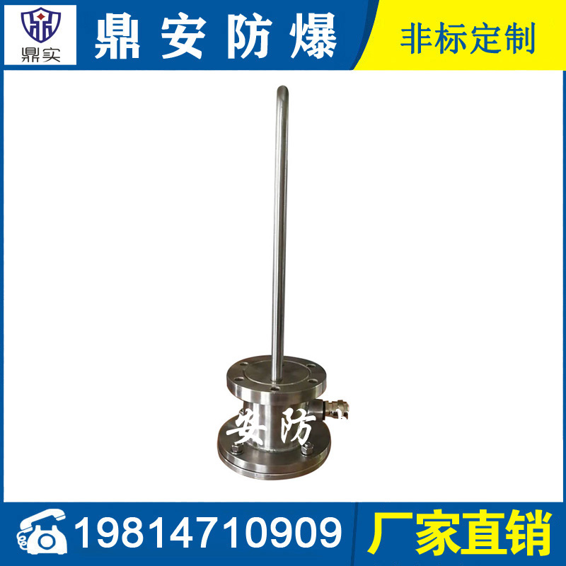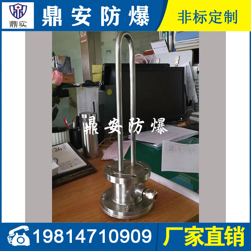 防爆法蘭加熱管是由多支加熱管焊接在法蘭上集中加熱。主要用于敞開式、封閉式的溶液箱和循環系統中加熱用。優點: 表面功率大,使一般電加熱表面負荷的2~4倍,高度密集式、結構緊湊。由于整體短而密集,故穩定性好,安裝無需支架。組合式法蘭加熱管大多采用氬弧焊接方式使電熱管于法蘭連接,也可利用緊固裝置的形式,即每支電熱管上焊由緊固件。然后與法蘭蓋采用螺母鎖緊。管子于緊固件采用氬弧焊接。緊固件密封處采用科學的工藝。單支更換方便,大大節約以后的維修成本選擇進口及國內優質材料。科學的生產工藝,嚴格的質量管理,保證電熱管優越的電氣性能。