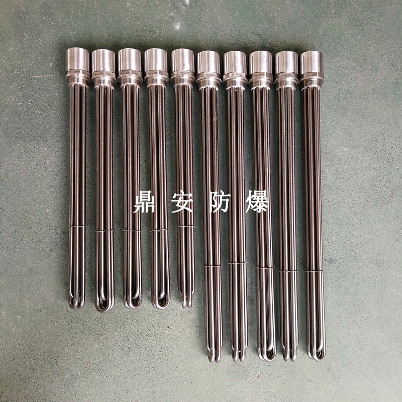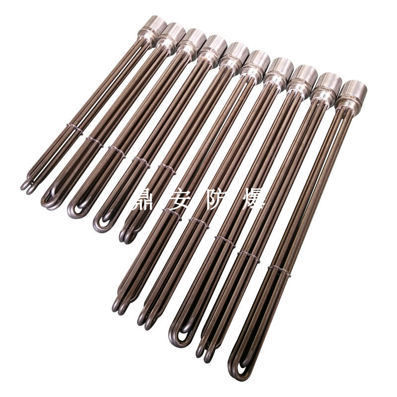 法蘭電熱管(也稱插入式電加熱器):是采用U型管狀電熱元件,多支U型電熱管焊接在法蘭上集中加熱,依據(jù)加熱不同介質(zhì)設計規(guī)范,按照功率配置要求裝配在法蘭蓋上,插入需加熱物料中,發(fā)熱元件工作時所發(fā)出的大量熱量傳導給被加熱介質(zhì)使介質(zhì)溫度升高,達到所需的工藝要求,主要用于敞開式、封閉式的溶液箱和循環(huán)系統(tǒng)中加熱用。