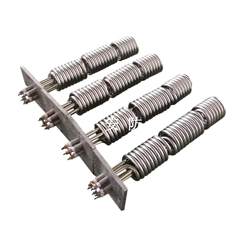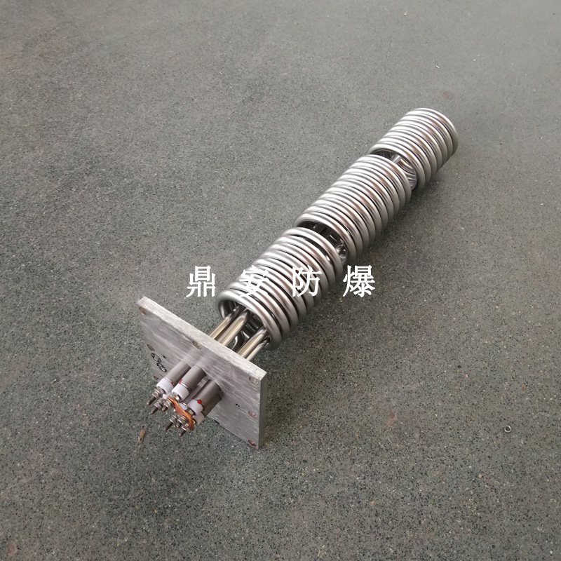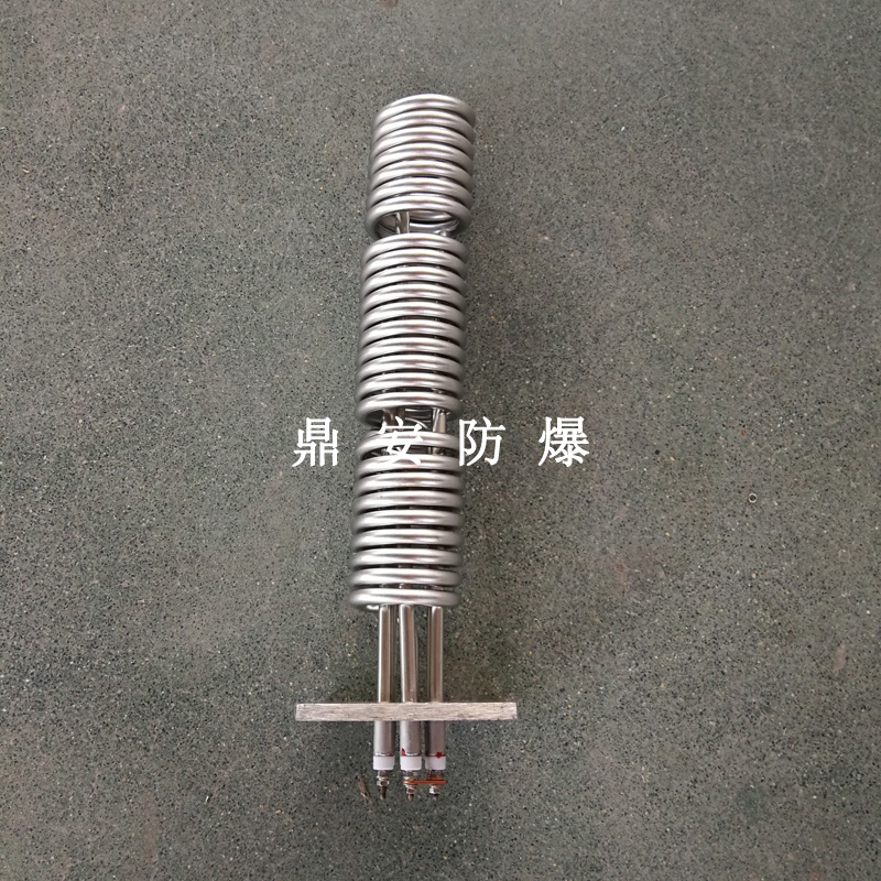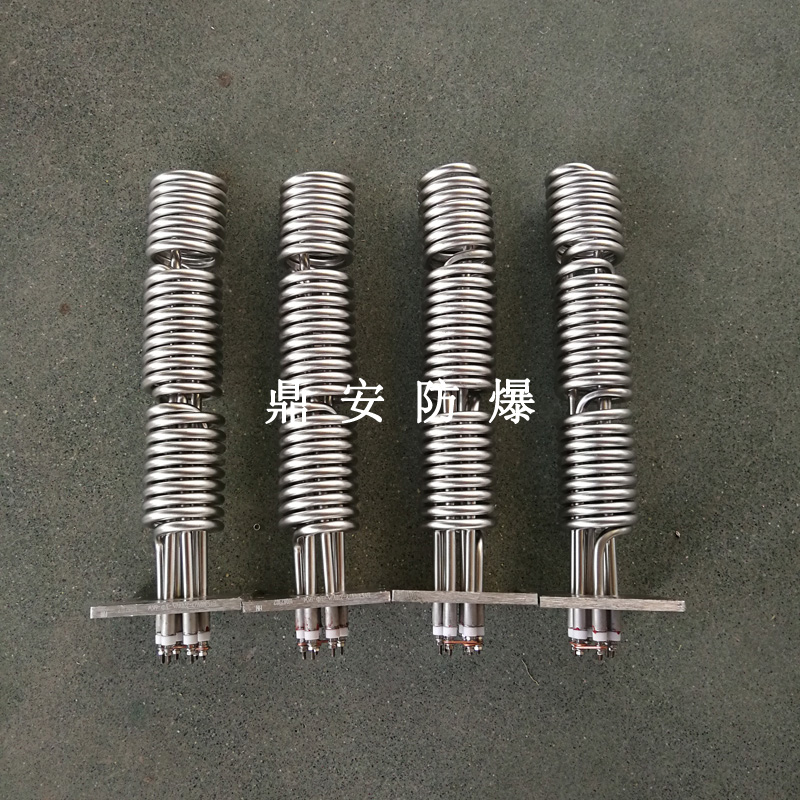 法蘭電熱管(也稱插入式電加熱器):是采用U型管狀電熱元件,多支U型電熱管焊接在法蘭上集中加熱,依據(jù)加熱不同介質設計規(guī)范,按照功率配置要求裝配在法蘭蓋上,插入需加熱物料中,發(fā)熱元件工作時所發(fā)出的大量熱量傳導給被加熱介質使介質溫度升高,達到所需的工藝要求,主要用于敞開式、封閉式的溶液箱和循環(huán)系統(tǒng)中加熱用。