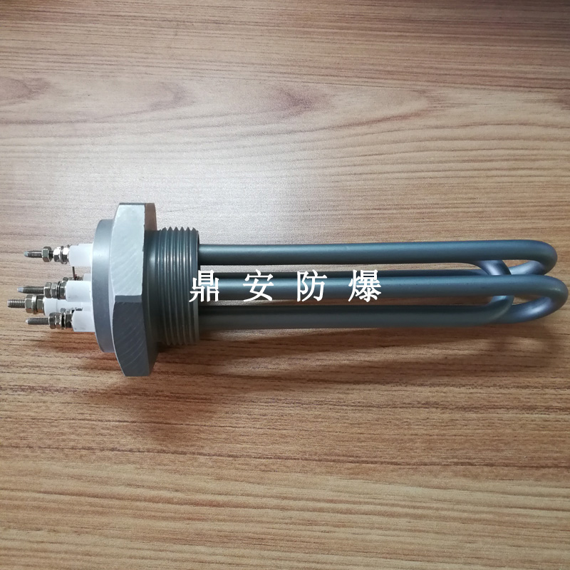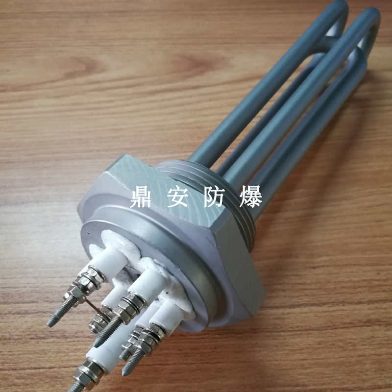 法蘭電熱管(也稱插入式電加熱器):是采用U型管狀電熱元件,多支U型電熱管焊接在法蘭上集中加熱,依據(jù)加熱不同介質(zhì)設(shè)計規(guī)范,按照功率配置要求裝配在法蘭蓋上,插入需加熱物料中,發(fā)熱元件工作時所發(fā)出的大量熱量傳導(dǎo)給被加熱介質(zhì)使介質(zhì)溫度升高,達(dá)到所需的工藝要求,主要用于敞開式、封閉式的溶液箱和循環(huán)系統(tǒng)中加熱用。